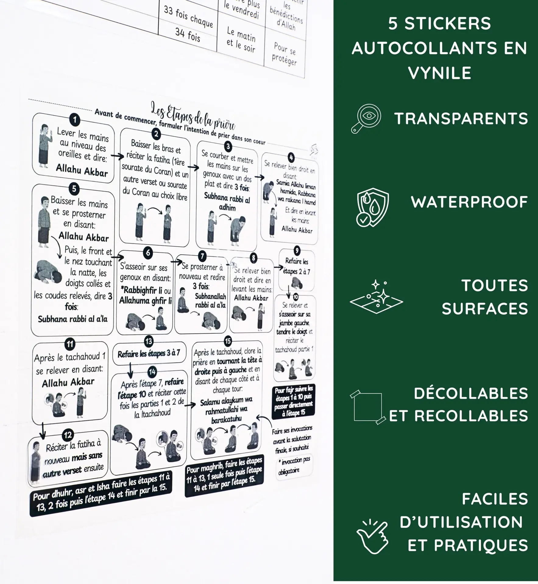 🕌 Stickers Muraux Islamiques – Apprendre la Prière, les Ablutions, les Douas et le Dhikr (Lot de 5)